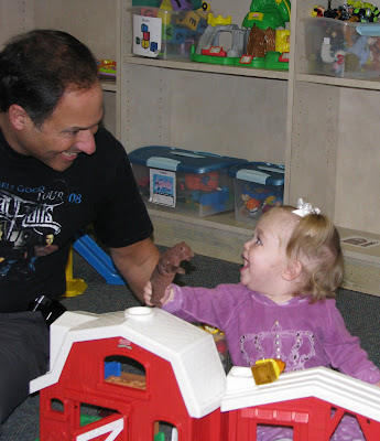 So... last night I started feeding Kenzie a "snack" meal. A snack meal is the same as all of her other meals except that it happens at night and there is no staff present to take data. They also had me try to feed it in my room to see how Kenzie would do in a different setting. For 2 nights now we have done this and it's going really well. Last night Kenzie had some issues with her peas. I think maybe they were extra grainy or something because on every pea bite she gagged or vomited. I told the staff that this morning. Other than the vomiting we did great. Tonight, the meal was what I would consider PERFECT! Kenzie took all of her bites, never needed the nuk, did not refuse any bites, and did NOT vomit! Both nights staff and people came in and out of the room and even though she had some distractions for the first time she loved it even more. The other fun part of feeding her in the room was that I was able to skype jordan in so he could watch. What we did was turn the webcam towards kenzie and jordan would press mute at home. Jordan could hear and see us but Kenzie had no idea Jordan was watching. It was like he was here and in the observation room. It made him so happy to get to see.